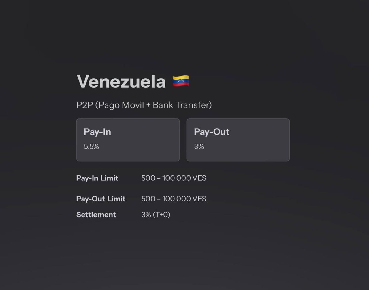 🇻🇪 Оффер на П2П в Венесуэле ✅ Для гембета и форекса ⚠️ Агрегаторов не рассматриваем 🛠 Pay in – 5,5% 🛠 Pay out – 3% лимиты от VES 500 до VES 100 000 ⚡ Settlement USDT T+0 3% Для связи: @mylifediane_PHR