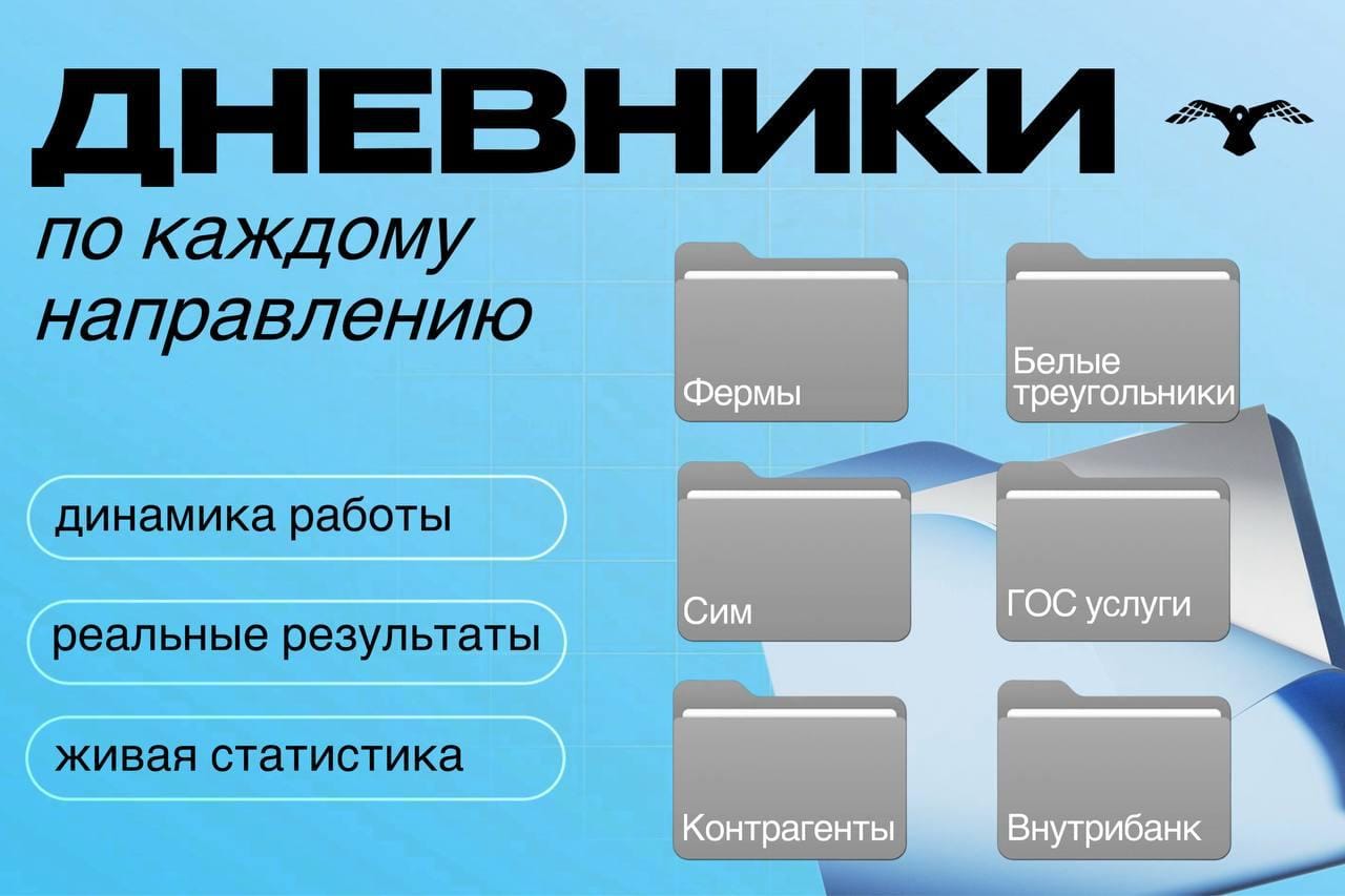 🦅 Коллеги, важный апдейт! ⚠️ Мы запускаем дневники наших ответственных по направлениям Теперь каждый день вы будете видеть реальные результаты, живую статистику и динамику работы по каждому направлению. 🔥 У нас уже выстроена самая удобная система ответственных, вы всегда знаете, к кому обратиться, где задать вопрос и как быстрее войти в работу. Теперь